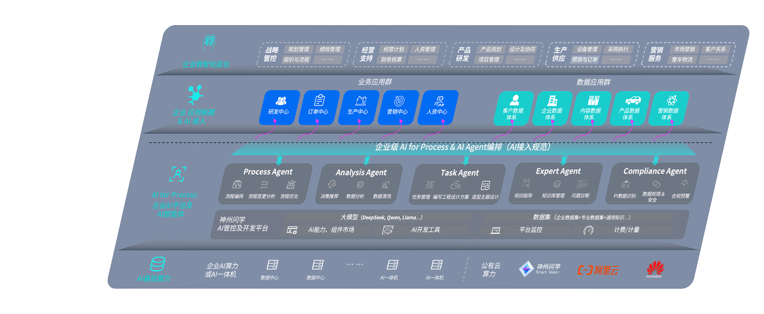 端到端的一站式AI工作空间深度融合了从企业战略规划到日常经营的全流程业务板块,,定向解决车企内部领域多、、部门多、、、链条长、、、、场景碎片化等难题,,支持车企快速构建以AI为核心的生产力写作体系,,实现任务执行与AI能力的无缝集成与交互
